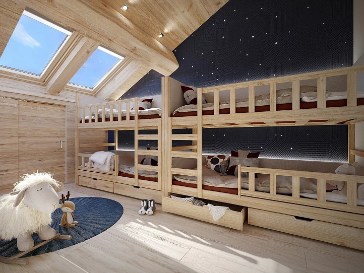 Ce magnifique penthouse propose de généreux espaces de vie, comprenant 3 chambres, une chambre avec lits superposés et une grande mezzanine pouvant servir de bureau, d'espace enfants ou de chambre supplémentaire. Le séjour, doté d'un plafond cathédrale de 6 mètres de hauteur, s'ouvre sur une vaste terrasse offrant une vue panoramique, de Pleney jusqu'à Nantaux. L'architecture de style chalet, avec ses grands balcons et ses balustrades en bois sculpté, sublime le charme de la propriété, tandis que les finitions haut de gamme témoignent du savoir-faire du plus important promoteur de Morzine.
