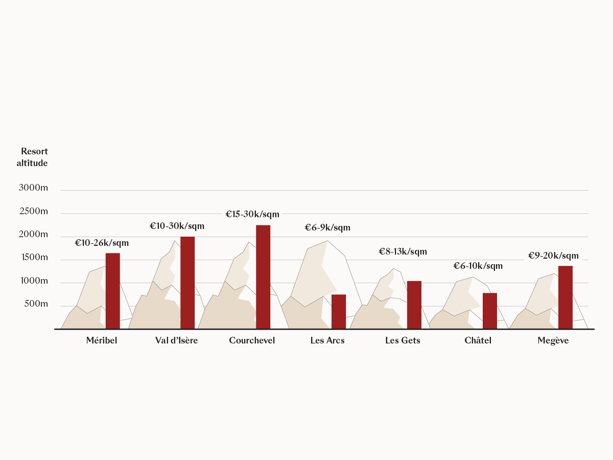Property prices vary according to the resort, proximity to amenities, the size of the property and, of course, its finishes. The graph below looks at the average property price for new-build properties in some of our top resorts in the French Alps.