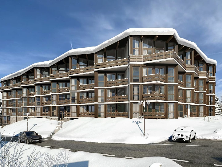 The project comprises six spacious penthouses of 128 to 138 sqm, available in four-bedroom and four-bedroom plus bunkroom layouts. Each home features large outdoor areas designed to maximise sunlight and panoramic views. Interiors are finished to a high standard, combining contemporary comfort with alpine character. Residents also benefit from access to nearby facilities, including a swimming pool, sauna, hammam, restaurants, rooftop bar, ski shop and ski school.