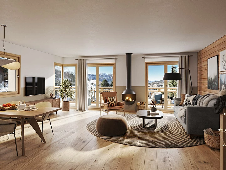 Set in an elevated position, in a quiet residential area, this boutique residence features 15 thoughtfully designed apartments and duplex penthouses spread across two traditional-style chalets. Offering 1 to 4-bedroom layouts from 44 to 109 sqm, each unit includes private outdoor spaces such as terraces, balconies, or gardens, perfect for enjoying the open views toward the Aravis mountains.
