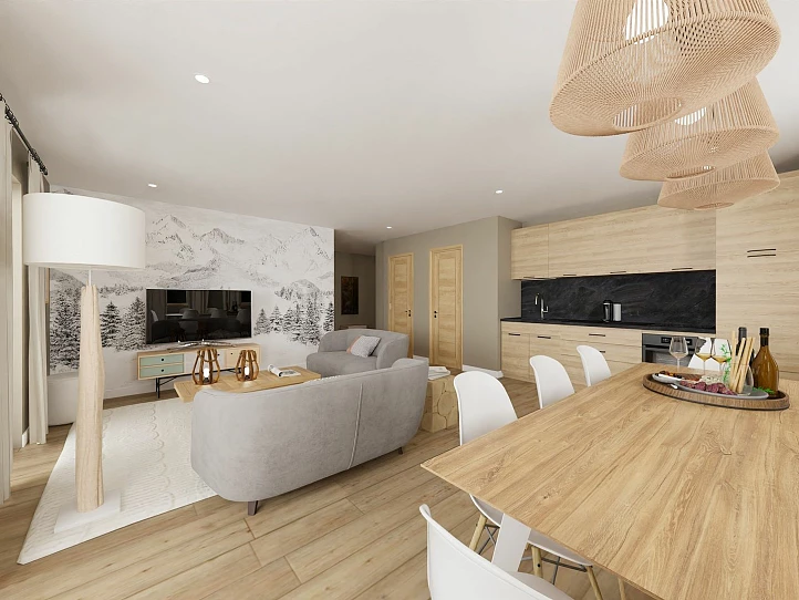 La Toussuire is getting a stylish upgrade with the arrival new buildings that raise the bar for the resort. This new project of 30 apartments will blend in with the surrounding architecture. The chalet-inspired facades are clad in natural stone and wood, while the interiors boast parquet flooring, modern kitchens, and a calming palette of light shades. Large windows and glass doors flood the apartments with natural light and offer stunning views of the mountains. Each apartment also comes with a balcony or terrace, perfect for sipping coffee before hitting the slopes or enjoying sunset drinks with loved ones.