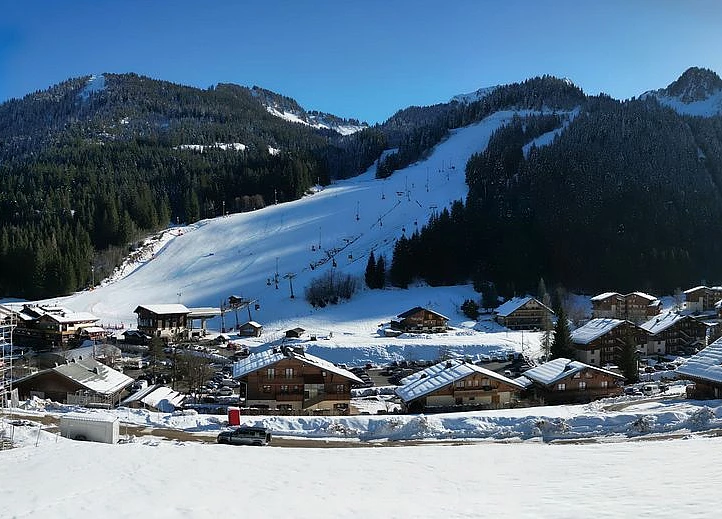 The hamlet enjoys a privileged position just 100m from the Linga gondola and slopes, ensuring unparalleled access to the ski area. The location combines tranquillity with convenience; though situated in a quiet residential area, a free ski shuttle stop is merely 50m away, restaurants and sports shops are accessible within a 2-minute walk, and the vibrant village centre of Châtel is just a 4-minute drive. The area promises sunny days with its south-facing orientation, offering open, sweeping views over the surrounding alpine scenery.