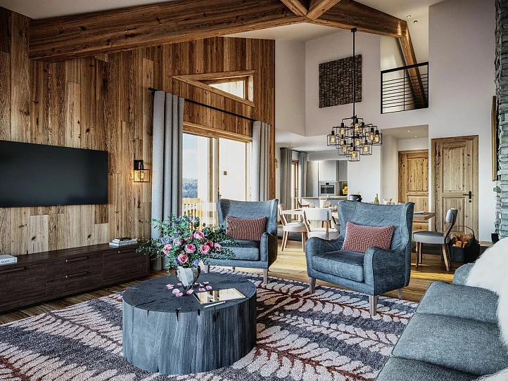 Experience the authentic Alpine feel with our minimalist-style properties finished with wood and stone interiors. Enjoy the breathtaking views from your balcony or terrace, or indulge in the luxury of a private garden, perfect for summer relaxation with loved ones. Our properties come with secure parking, ski lockers, and cellars, ensuring your peace of mind.