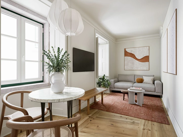 Designed to respect the city’s rich heritage while meeting modern expectations, ROCIO Salema Courtyard features 36 thoughtfully designed apartments, ranging from studio to two-bedroom layouts. Each unit is delivered fully furnished and equipped, offering a turnkey solution in a highly sought-after location. Original architectural elements have been carefully preserved, while interiors showcase high-quality finishes, including Estremoz marble countertops, wooden flooring, and bespoke carpentry.