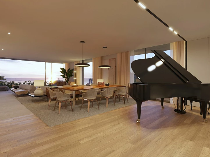 Forming a gated community with a 24-hour reception service and a doorman, this project comprises a mix of one to four-bedroom apartments with impeccable finishes using noble finishes. All of the bedrooms have en-suite bathrooms, the kitchens are sold fully equipped and each apartment has a generous balcony or terrace for taking in the panoramic sea views. There is more than 3,000 sqm of communal space, complete with an infinity pool, manicured gardens, exercise areas and serene water features. One underground garage parking space is included with each apartment as well as a Savoy Residence Card, for special access to the facilities and services of the Savoy Signature hotel collection.