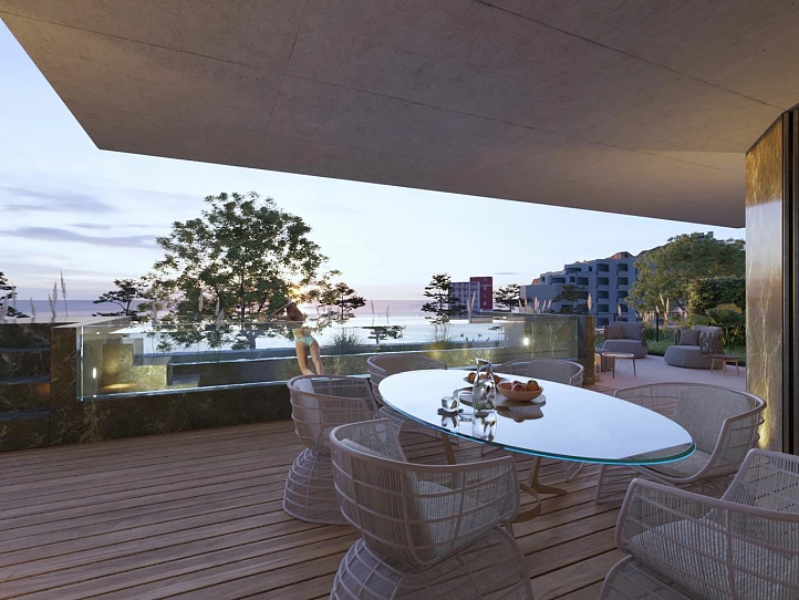 Forming a gated community with a 24-hour reception service and a doorman, this project comprises a mix of one to four-bedroom apartments with impeccable finishes using noble finishes. All of the bedrooms have en-suite bathrooms, the kitchens are sold fully equipped and each apartment has a generous balcony or terrace for taking in the panoramic sea views. There is more than 3,000 sqm of communal space, complete with an infinity pool, manicured gardens, exercise areas and serene water features. One underground garage parking space is included with each apartment as well as a Savoy Residence Card, for special access to the facilities and services of the Savoy Signature hotel collection.