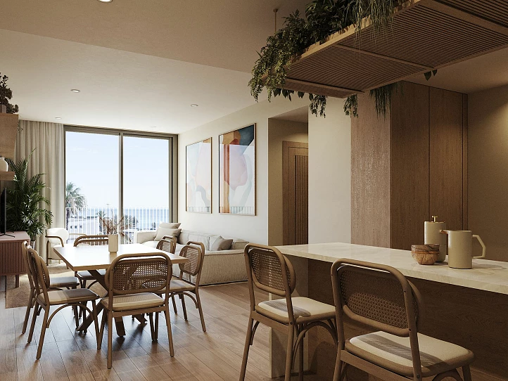 Estes apartamentos, meticulosamente mobilados, oferecem uma combinação perfeita entre funcionalidade e estilo. Os interiores espaçosos foram projetados para garantir conforto e privacidade, com amplas fachadas envidraçadas e acabamentos modernos que refletem a envolvente costeira. Os residentes podem desfrutar de serviços de tipo hoteleiro, incluindo receção 24 horas, piscina e ginásio, beneficiando ainda da flexibilidade de arrendamentos de curta ou longa duração.