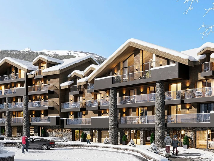 Upptäck en fantastisk samling av 31 fullt utrustade lägenheter, inbäddade i en helt ny byggnad designad i traditionell alpin stil. Med en charmig chalet-inspirerad fasad av sten och trä och ett sluttande tegeltak erbjuder dessa bostäder den perfekta blandningen av modern lyx och rustik charm. Varje lägenhet har tre till sex sovrum och generösa vardagsrum och matsalar med öppen planlösning, vissa med dubbel takhöjd och balkonger i västerläge med hisnande utsikt över bergen. Välj bland ett urval av ytbehandlingar för att sätta din prägel på fastigheten och njut av den extra fördelen med ett sovrum med våningssäng, perfekt för att öka hyresattraktionen. Njut av hotellets restaurang och bar, eller varva ner i det inbjudande spaet med inomhuspool och behandlingsrum. Missa inte din chans att äga en bit av det alpina paradiset.