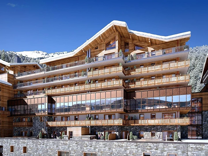 Detta nya projekt ligger direkt vid pisten i La Tania och kombinerar ett 4-stjärnigt hotell med 75 rum och en privat bostad med 70 lägenheter. Utformat för ett sömlöst alpint boende erbjuder det ski-in/ski-out direkt vid pisternas fot, med gondolen endast 100 meter bort. Projektet är södervänt och omgivet av öppna vyer, och kombinerar modern komfort med direkt tillgång till det världsberömda skidområdet Three Valleys.