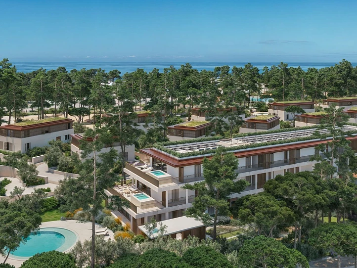 Detta exklusiva strandnära bostadskomplex på den natursköna Troia-halvön erbjuder en enastående livsstil präglad av lugn, rekreation och exklusivitet. Området omfattar 37 villor med egna trädgårdar och pooler samt 71 lägenheter med terrasser eller trädgårdar, där varje bostad är omsorgsfullt utformad för att smälta in i den naturliga omgivningen samtidigt som den erbjuder modern komfort och elegant design.
